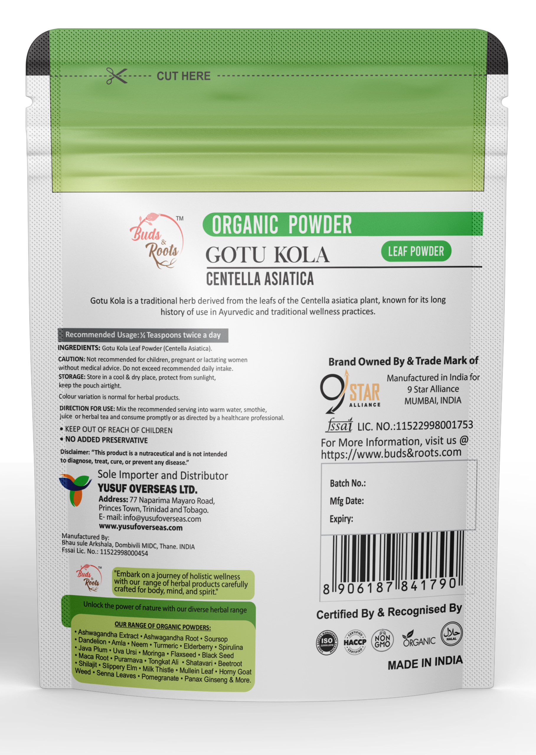 Buds & Roots Gotu Kola Organic Powder